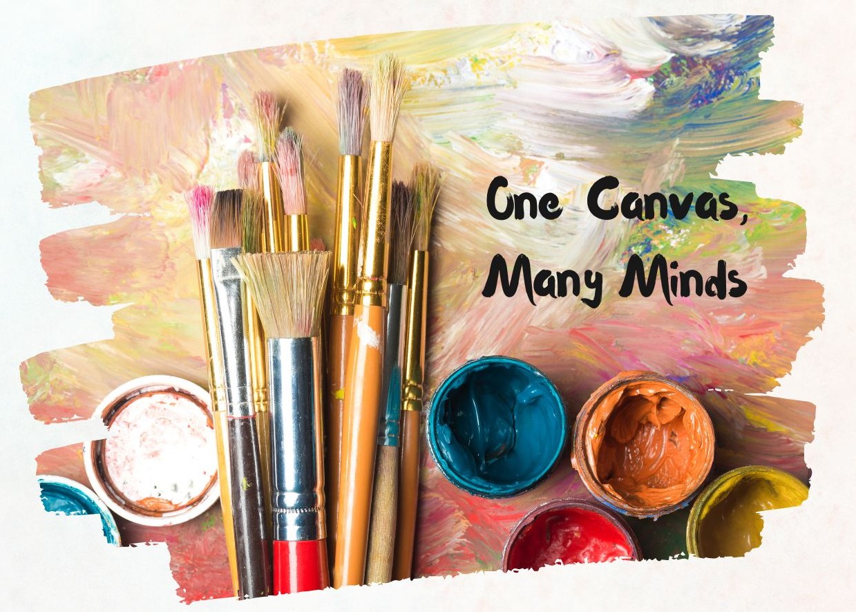 Start by choosing your subject and beginning your painting. Then pass your canvas to the next person, who will add their own touch and continue the artwork. Keep passing it around the room so everyone contributes to the final piece.